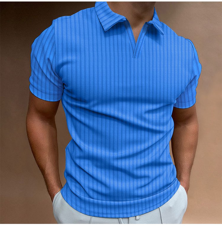 メンズリブ編みスキッパーポロシャツ